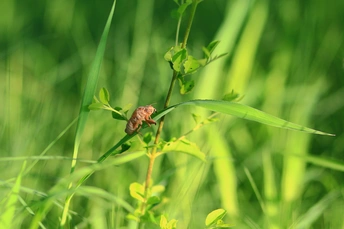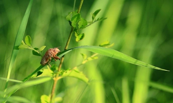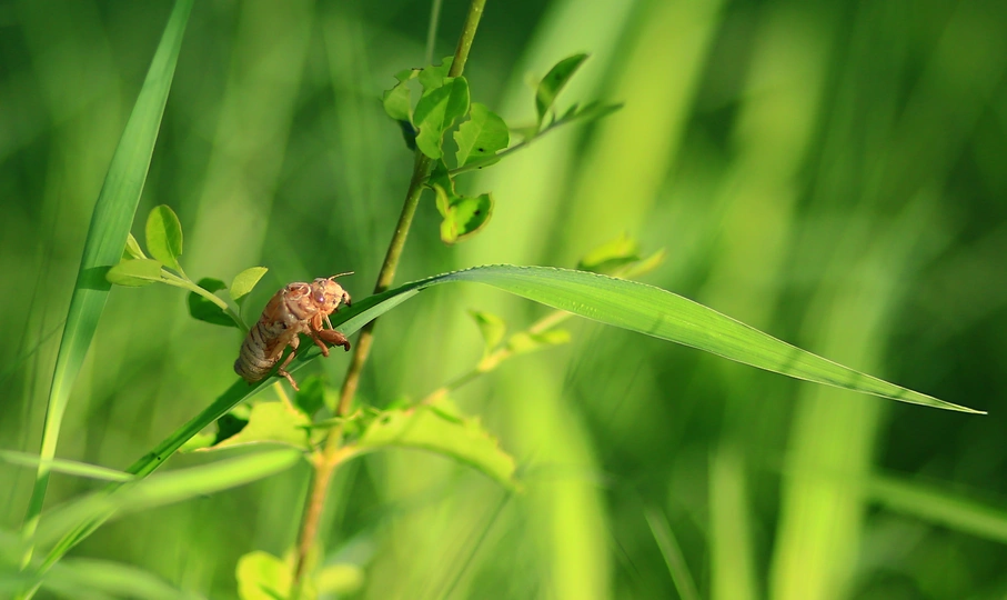青草上的蝉蛹壳