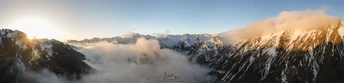 熊猫王国之巅清晨日出,洒在云海上,照出一片金色