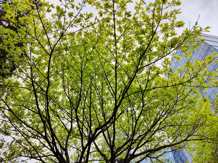 嫩绿色的树叶也可以是春天的报信者呀,春天的气息扑面而来
