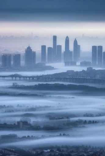晨雾中的都市