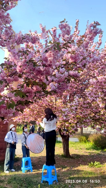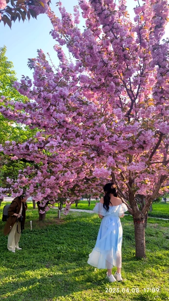 浪漫纯洁的樱花盛开,赏花拍照的游人多么幸福快乐!