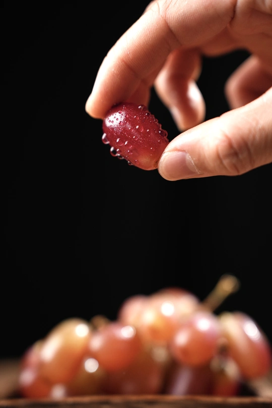 ?♀️整体思路:本次拍摄产品是水果类,需要突出水果的水润新鲜的感觉。整体基调为中式暗调,布景上打造农家午后的厨房氛围,暗示葡萄的原汁原味。拍摄时给葡萄喷点水,更能有新鲜采摘的感觉。 . ?食物造型注意 - 拍摄时给葡萄先洗个澡,除去坏果。 - 尽量选择个头饱满,大串的葡萄,摘下几个,布景时摆出高低错落的层次感。 - 拍摄时适当给葡萄涂上凡士林,再碰水,制造水珠凝固的感觉。 . ?️需要的画面 - 拿起一串在滴水的葡萄 - 拿起一颗有水珠的葡萄 - 葡萄放在桌上 - 单个葡萄和一串葡萄的对比特写 . ?道具选择: - 中式场景道具:木质的背景纸或者木板,方形木盘,福字小缸,纱布 - 特殊氛围道具:一杯水,凡士林,小喷壶 . ?光线:裸灯打侧逆光都可以,模拟阳光,注意不要把背景打亮,左前侧反光板补光。要拍出透亮的葡萄,通透感的布光是关键,侧逆光可以拍出透明的水珠,让画面有呼吸感。左前侧给葡萄补高光,使之更诱人。 . ❣️角度 - 45度交代环境氛围。 - 平视,拍出滴水的画面。 . ?后期tips:拉一下暗角会更有氛围哦!如果葡萄太脏,可以用涂抹画笔给葡萄磨个皮~ . 好啦!预祝夏天快乐,照例请大家云吃葡萄~关注我,一起拍美食大片!