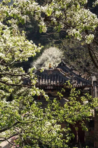山不在高,有仙则名,寺不在远,有花则灵。花与寺,烂漫与庄严,从不相斥,从来自然。自然地沾染了对方的气息,自然地形成一种互文。一座寺,若花开得好,感觉上便不过分肃穆,不拒人于千里之外,而一树花,若端端地长在寺里,长个上百年,仿佛也成了仙一般,枝杈横伸出去,都带着禅意美感。