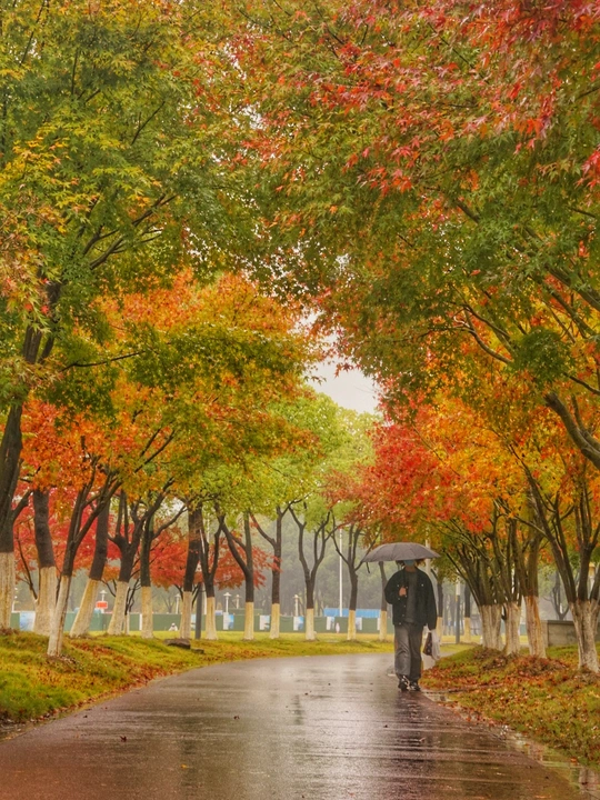 金陵的秋天啊,像是打翻了哪位画家的调色盘。行人步履匆匆,走在小雨淅淅沥沥的小道上,像是走进了画卷里。