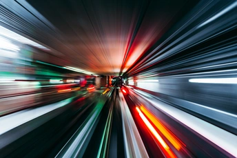 广州APM线在慢门拍摄下,如同时空隧道一般。