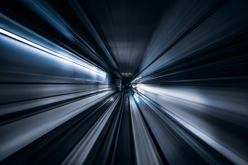 广州APM线在慢门拍摄下,如同时空隧道一般。