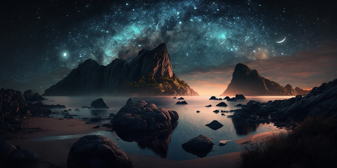 夜空中,星星们如同绽放的烟花,或密集或稀疏,将夜晚的寂静装点得分外迷人。其中,最为璀璨夺目的北极星高悬于天顶,如同指引着黑夜的航向。四周围绕着她的星群,像是她的侍卫,忠诚地守护着这位皇后。繁星点点,共同组成了一个美丽的星座图案,诉说着古老的神话故事。 AI风格作品