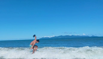 这是著名的太平洋湾,砂细浪急,正宜冲浪。