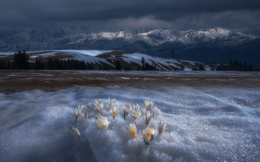 那拉提野百合,是灵魂干净的底色。 初春的那拉提,冰雪初融,巍峨的山顶依旧白雪皑皑,一朵朵小小的那拉提野百合蔓延在新绿的草原上,开启了那拉提草长鹰飞的春天。 虽然那拉提的野百合遍布草原,但是刚顶出冰雪的相当少,为了彰显野百合的神圣,寻遍大草原,连续找了两天,在大雪过后,终于觅得满意的百合,欣喜万分。