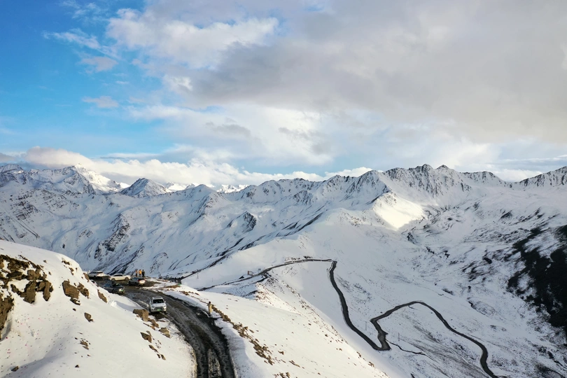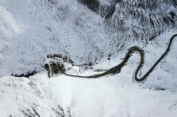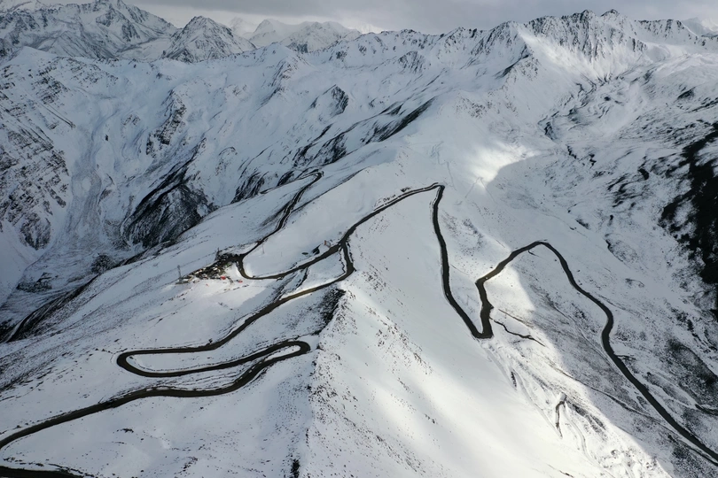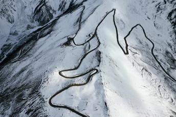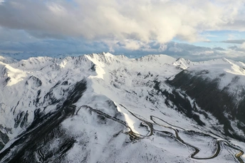 子梅垭口位于甘孜州康定市贡嘎乡,海拔4500米,乡民们修建的乡村简易公路在子梅山中盘旋婉转,在雪山的衬托下,从空中看去犹如一条漫游在皑皑雪山上的一条小蛇,显得非常漂亮美观。这里是近距离观看蜀山之王贡嘎雪山的绝佳之地。