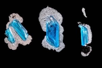 P1是把饱和硫酸铜溶液的液滴滴在玻璃板上自然风干后形成的晶体 P2是小半杯饱和硫酸铜溶液自然风干后形成的晶体 P3是拍摄现场 📷:尼康z62+老蛙100mm f2.8