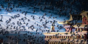 一群野鸽划破晨光,开启新一年的旅途。