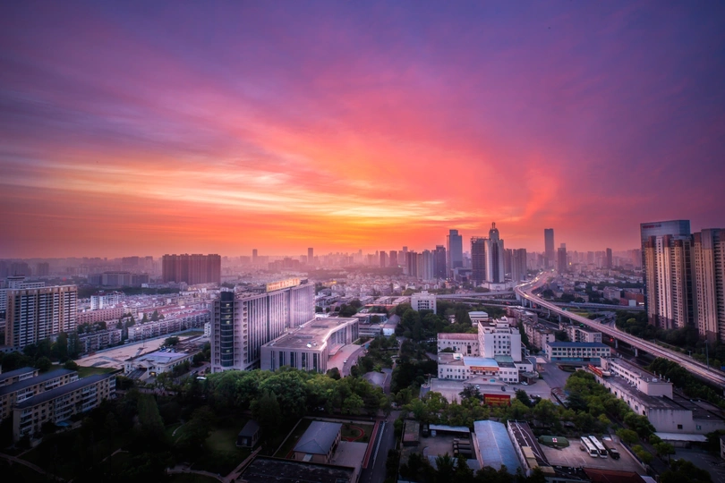 因为学校半夜锁门,半夜十一点就要从学校去到15公里外的市中心的天台上等待这次朝霞,虽然很累,但是值得。(因为合肥只蹭了这次朝霞的边,等的时候天都快亮了都没颜色,差点以为要被鸽了)
