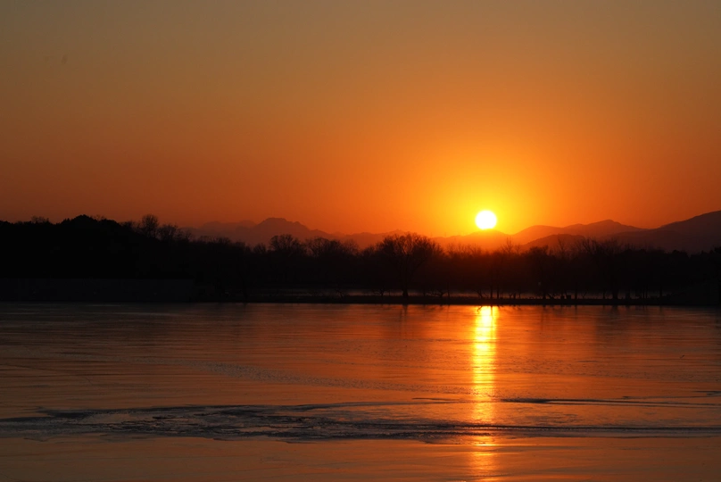 落日慢慢从地平线消失,一切都被它那不顾一切的挣扎染成了红色