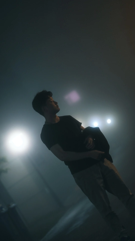 在深夜的小区中,浓雾包围了我们,我去用相机记录我们的友情。