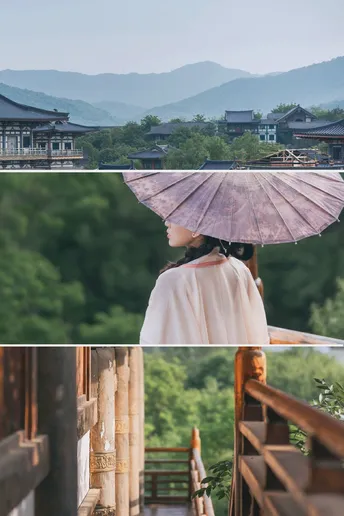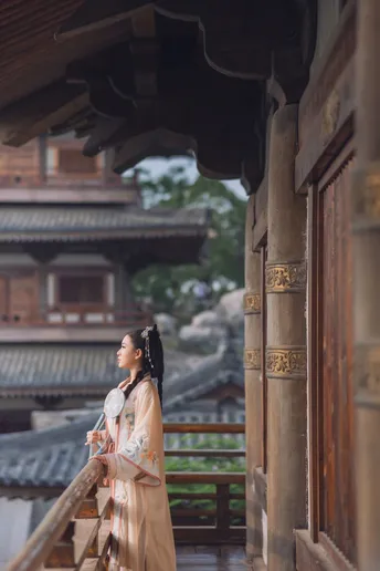 亭台楼阁,庭院深深几许, 雕梁画栋,南风轻轻微凉。