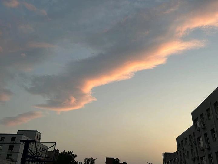 下了晚自习,抬眼望去,便见到朝霞满天,其中一朵云吸引了我的视线,它的一边被金红色的夕阳染成了橙色,散发着迷人的光芒,犹如那天使的翅膀般美丽而灿烂。