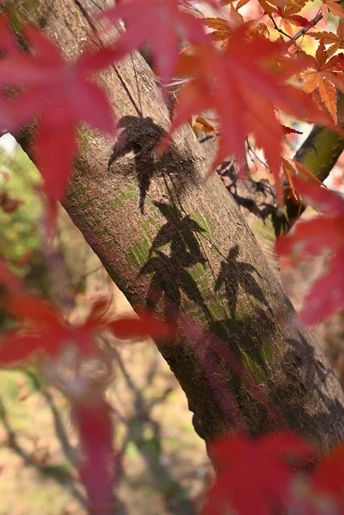 树影斑驳,枫叶爬满了树干,给它贴上了好看的贴纸🥰🥰