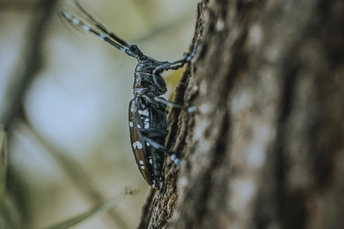 咀嚼式口器 有长的触角 植食性的昆虫 危害木本植物 其幼虫生活于树木材中 对树或建筑物造成危害 ——天牛