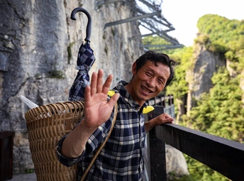该张照片拍摄于湖北恩施,恩施被称为华中药库,药草王国,爬山时,我遇到这位采药的老者,经过交谈得知,该老者常年在山上采药,老人骄傲的说着,我家里有三位大学生,都是我采药供出来的,老人仅凭一双手,常年在绝壁上采药,却是替国家培养了三位大学生,我肃然起敬,同时用相机记录下了老人乐观的笑容.