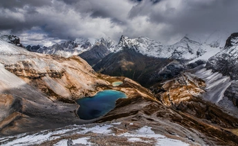 拍这张照片的时候,我正背着相机登山,由于是在高海拔地区徒步登山,每爬一小段距离就得停下来休息。也许是老天看我虔诚给我机会,就在我登上半山腰转过身正准备坐下休息的时候,发现阳光穿过云层中的间隙照射在海子周围,我便快速的拿起相机记录下了这一瞬间。