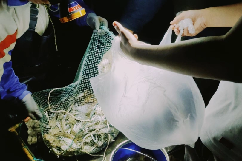 小记和朋友们大晚上赶海,没有捕到螃蟹,从渔民手中15块钱买到两斤,拿回食堂让大叔帮忙煮了,姑且可以称之为收获之夜