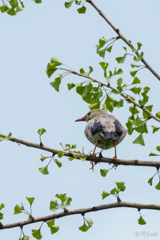 在树上休息的丝光椋鸟。摄于成都双流中心公园。