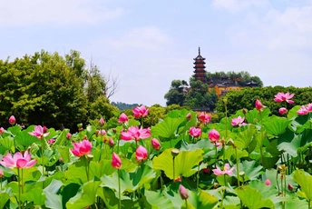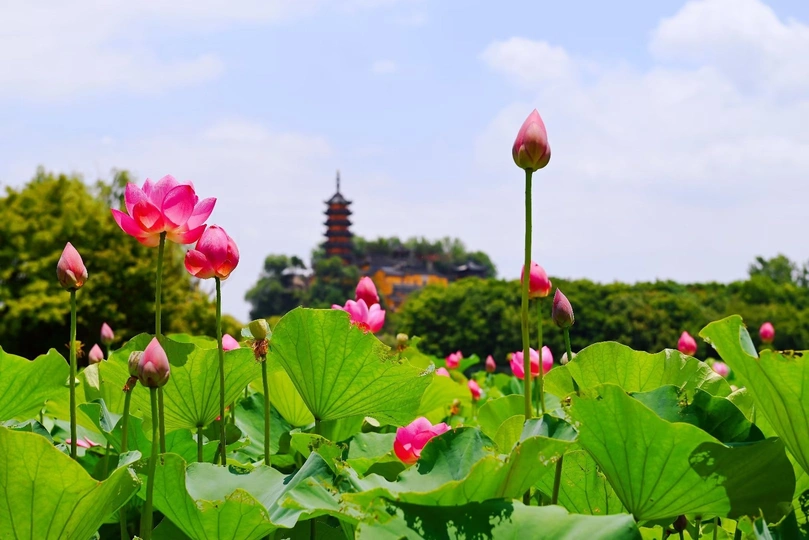 镇江白娘子爱情文化园~荷花绽放(1)。