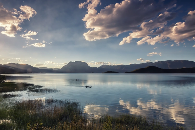泸沽湖,位于四川省凉山州盐源县与云南省宁蒗县交界处,为川滇共辖,湖东为盐源县泸沽湖镇(原左所区),湖西为宁蒗县永宁乡。湖泊略呈北西—东南走向,湖泊面积50.1平方公里,湖水库容量为22.52亿立方米。泸沽湖属高原断层溶蚀陷落湖泊,属长江上游干流金沙江支流雅砻江支流理塘河水系,为小金河上源,经雅砻江流往金沙江。泸沽湖湖盆区坐落于永宁盆地,是中国第三大深水湖泊,湖内有一小岛。泸沽湖周边主要居住着摩梭人、彝族和普米族,沿岸居住有蒙古族7种民族,约1.3万人。优美的自然环境和奇特的民族风情,使这里成为著名的旅游景区。泸沽湖区域内设有丽江泸沽湖摩梭文化旅游区、凉山州泸沽湖旅游景区。泸沽湖,古名勒得海、鲁枯湖,纳西族摩梭语“泸”为山沟,“沽”为里,意即山沟里的湖。又因西岸盐源县元、明、清三代设左所土司千户所,解放后设左所自治区,又名左所海,俗称亮海,泸沽湖。泸沽湖,因东岸盐源县元、明、清三代设左所土司千户所,解放后设左所自治区,又名左所海,俗称亮海,位于四川省凉山彝族自治州盐源县与云南省丽江市宁蒗彝族自治县之间,是高原断层溶蚀陷落湖泊,为四川、云南两省共有,但四川的湖岸线比云南的湖岸线长。