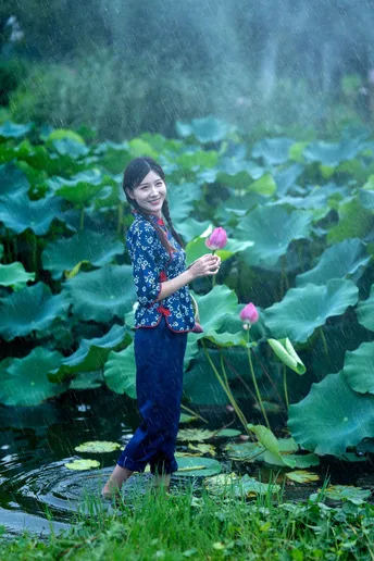 雨中村姑 出水芙蓉-笑笑