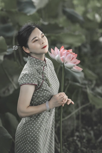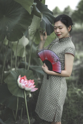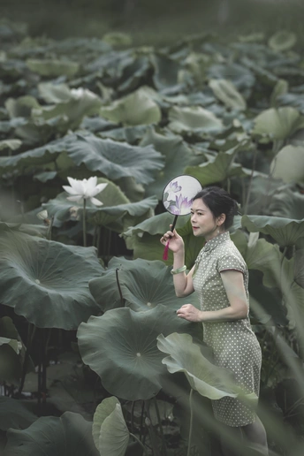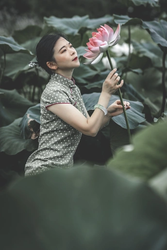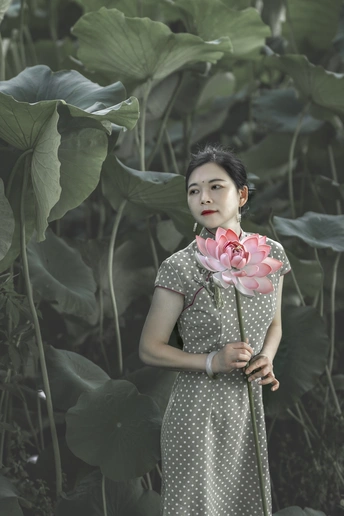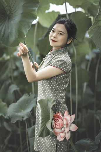《荷花人像》 清风来,因荷美。 愿化莲,心芬芳。