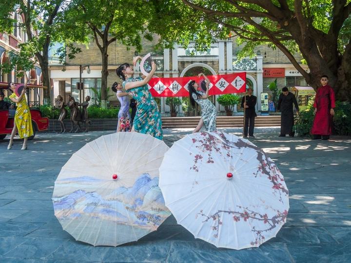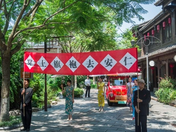 安仁古镇游街快闪。 安仁古镇,位于四川省成都市大邑县,规划面积4.1平方千米,规划边界为西至刘湘骑马像、东至会展路、北至绕镇路、南至斜江河,核心景区面积3平方千米,包含公馆老街、刘氏庄园博物馆、建川博物馆三大核心资源。 安仁古镇距成都市区39千米,双流国际机场36千米,成雅高铁大邑站10千米,成温邛高速大邑南出口8千米,大邑县城8.5千米。安仁古镇先后被建设部、国家文物局授予“中国历史文化名镇”,被中国博物馆协会命名为唯一的“中国博物馆小镇”,被中国文物学会命名为“中国文物保护示范小镇”,获批为“全国首批特色小镇”“国家5A级景区”“四川省首批文旅特色小镇”。 安仁古镇历史悠久,已有1380余年的历史。早在唐武德三年(620年)就建安仁县(早于大邑建县50周年),直至元至元二十一年(1284年),安仁县建置撤销,其区域划归大邑县。安仁古镇拥有国家4A级旅游景区2个(全国重点文物保护单位——刘氏庄园,中国最大的民间博物馆聚落——建川博物馆聚落)、全国最大保存完好中西合璧的老公馆群落27座、现代博物馆场馆48座、文保单位16处、藏品1000余万件、国家一级文物3655件。