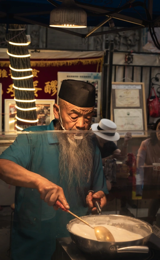除了烤肉、凉面凉粉、烤冷面烤羊腿之外有两样东西没见过,就试吃了一下: ①牛奶鸡蛋醪糟:这个东西吧。。就是我们平时吃的酒米,额外加了牛奶、鸡蛋、葡萄干和黑白芝麻。吃起来还OK,跟酒米的味道还是有区别的。(因为是热的,吃起来还是比较暖胃的)【价格:¥10】 ②炒拔拉:这个。。听起来蛮新鲜的,店面的人还介绍说得过**u赞赏啥的。给吃的锅也挺有特色,两个人抬着个大盘锅,上面放着炒拔拉。但是咧,炒拔拉其实就是爆炒牛肉、羊肉、鸡肉、面包块、辣椒和洋葱的大杂烩,后面还会给一些辣椒粉的蘸料。(说实话,其实挺重口的,吃不了辣或受不了羊膻味还是不建议吃。还有一点要注意,这个炒拔拉即使是小份的也是2-3人的量,一个人压根吃不完)【价格:¥50~100】[吃瓜围观]