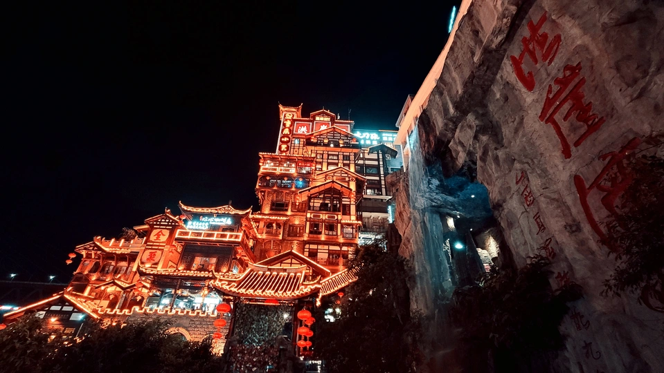 下班后和朋友前往洪崖洞周师兄火锅店一包口福后,返程途中路遇美景,特用手机定格记录,特此留念!