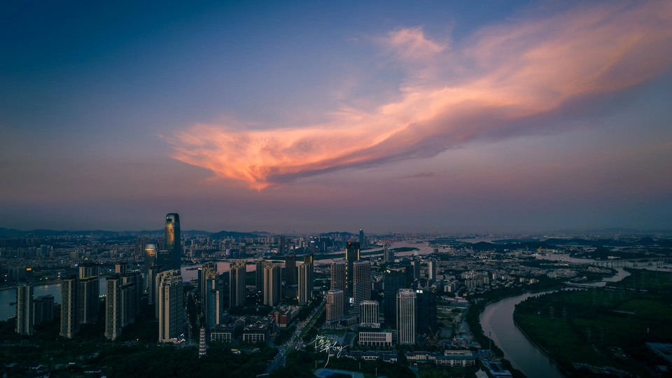 像漫画离得一样波气功横扫式的一道霞云 很少见的晚霞云类 设备 DJI AIR 2s