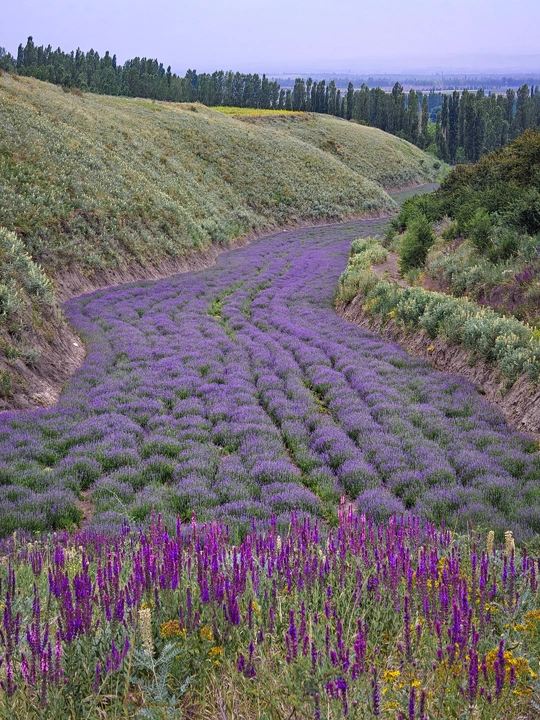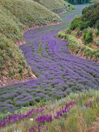蜿蜒的河道里被种上了薰衣草,待这些薰衣草盛开后,这里便是一条薰衣草河