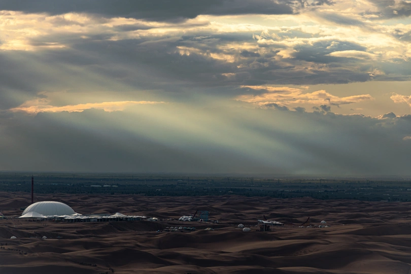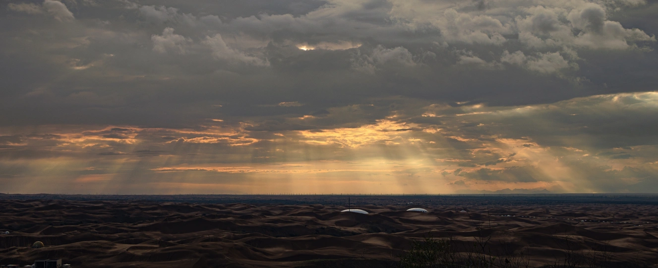 摄于鄂尔多斯响沙湾沙漠,当日沙漠下了三次雨,所以沙不是那么细腻,傍晚远方景观特别美