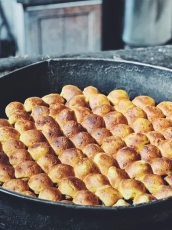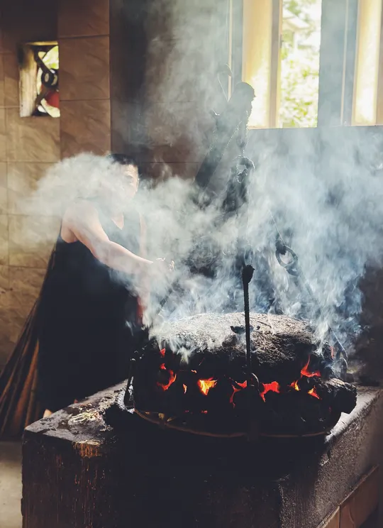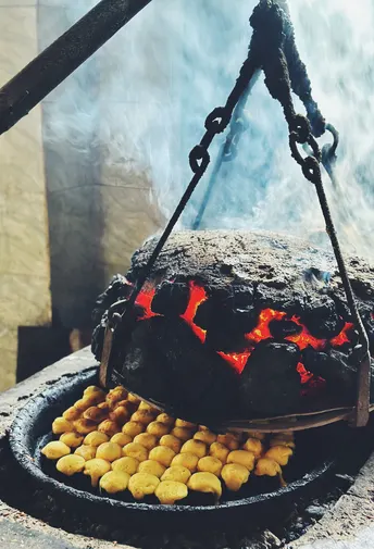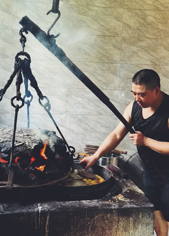 在崇州街子古镇的附近, 有一家张蛋糕副食品店, 用炭火烤蛋糕 用简单朴实的炭火传递 将面粉烤熟 一锅大概能烤四斤左右 传统的手艺,古朴的气息, 刚出锅很香,很有嚼劲, 人均20元/斤