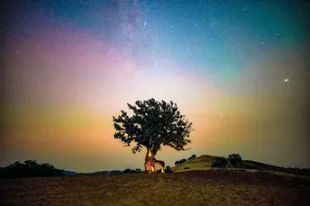 一棵如同精灵的古树,在夜晚的五彩气辉中,化身一头五色神🦌。