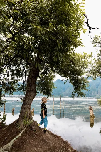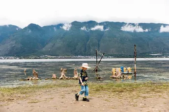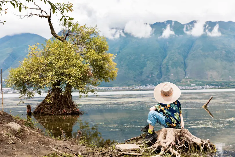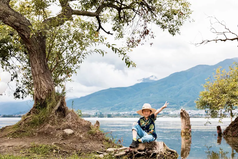 观水光万顷开天镜, 阅山色四时环翠屏。