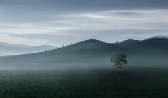 拍摄于早上6.00的乌兰布统大草原,草原的一层薄雾如 梦如幻。云烟迷漫赤草原,乍见之时兴妙想。雾气笼罩 山峦间,彷佛仙境亦难忘。