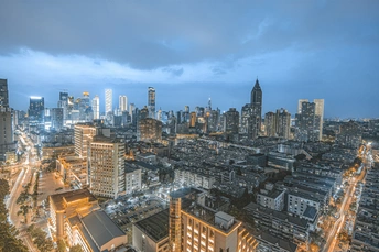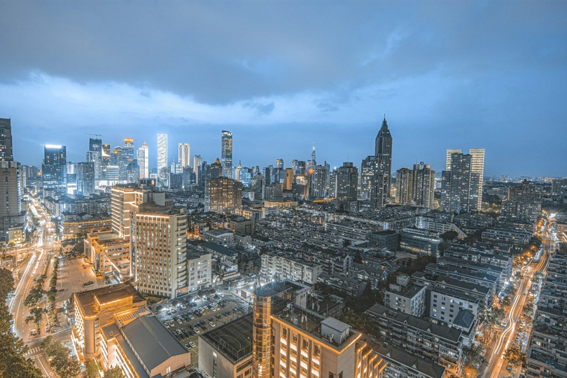 蓝调之下,常府街与长白街相交,包围新街口,形成独特视角