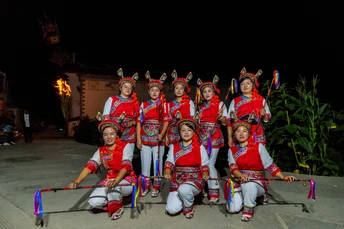 夜幕降临,火把熊熊燃烧,人们纷纷聚拢火把下,女人们载歌载舞,祝福着火红的日子!