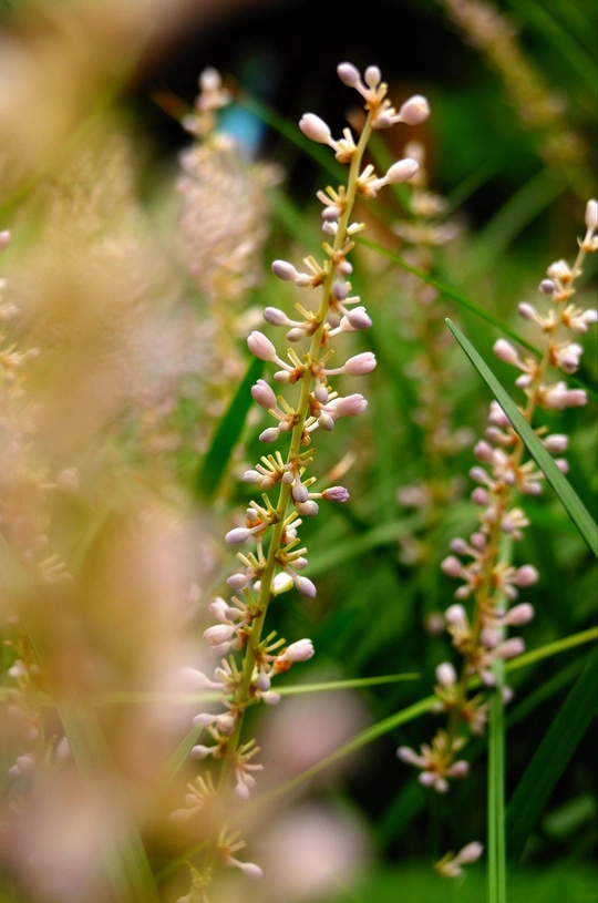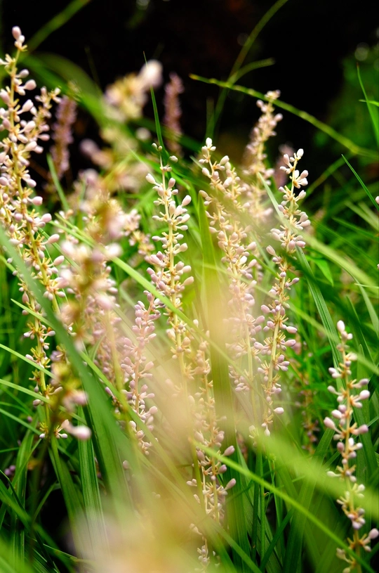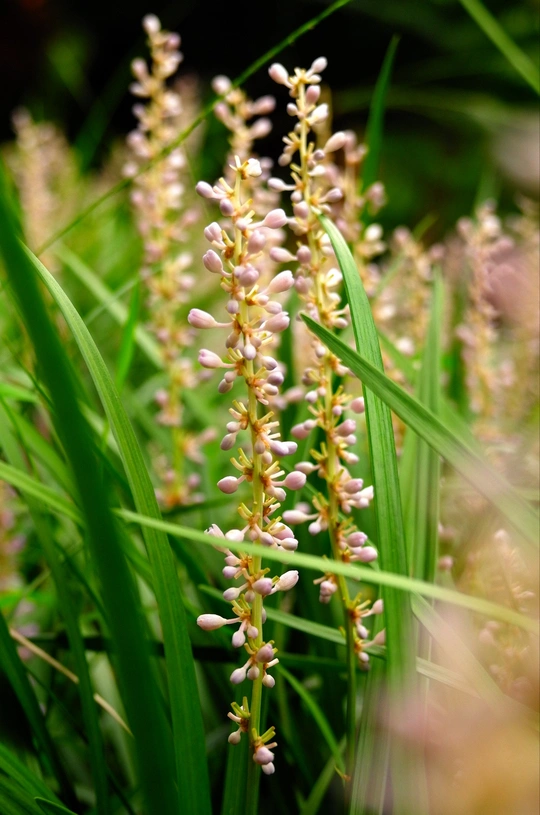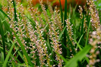 [麦冬草] 麦冬,花白色或淡紫色,果子如同蓝宝石或黑宝石一般。天门冬科沿阶草属草本植物,根较粗,中间或近末端具椭圆形或纺锤形小块根,小块根淡褐黄色;茎很短;花单生或成对生;种子球形;花期5—8月,果期8-9月。麦冬原名麦门冬,其名源于“虋冬”,最早见载于先秦著作《山海经—中山经》之条谷山:“其木多槐、桐,其草多芍药、虋冬”。 麦冬原产中国,现分布于广东、广西、福建、台湾、浙江等地,也分布于日本、越南、印度;生于海拔2000米以下的山坡阴湿处、林下或溪旁;喜温暖湿润、降雨充沛的气候条件和较荫蔽的环境,耐寒,忌强光和高温。繁殖方法多采用分株繁殖。 麦冬是中国第一部药物学著作《神农本草经》记载的上品药物,因其块根是名贵的中草药,而成为农民种植的一种高效经济作物。麦冬也被称为“禹韭”,其来历有这样一个传说:大禹治水成功后,就命令把剩余的粮食倒进河中,河中便长出了一种草,即麦冬,人们称此草“禹余粮”。 《本草衍义》《本草备要》中均记载麦冬有养阴生津、润肺清心的功效,其能养心阴,清心热,并有一定的除烦安神作用,可用于心阴虚有热所致的心烦、心悸怔忡等症。