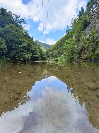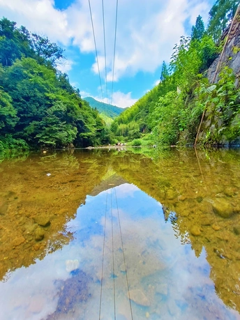 一幅美丽的自然景观画面,让人感受到了大自然的魅力和美妙。照片中的小溪水清澈透明,如同明镜一般,这种形象的描绘让人感受到了水的纯净和静谧。阳光透过树叶洒下的斑驳影子,更是增添了画面的层次感和动态感。沿溪漫步,呼吸清新空气,欣赏自然美景的场景也让人产生了身临其境的感觉,仿佛能够与大自然亲密接触,感受到它的温暖和魅力。