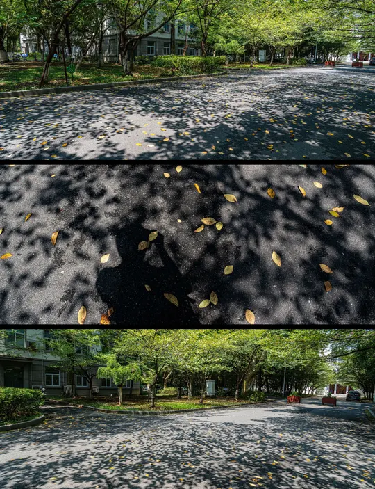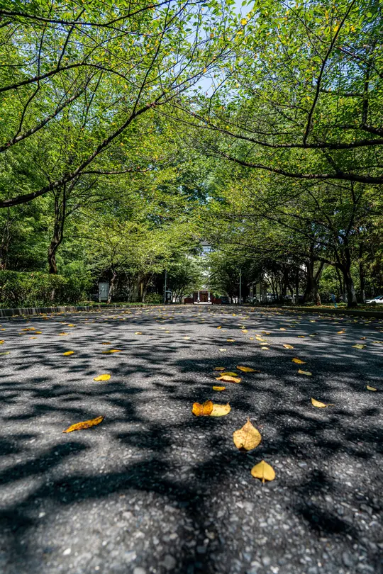 处暑这天,南林的樱花大道上阳光撒下来,光斑和刚落的早秋黄叶甚是好看!夏天要结束了,秋天要来了!