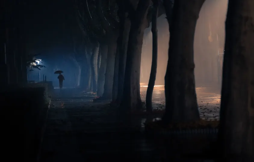 梧桐大道的雨夜
