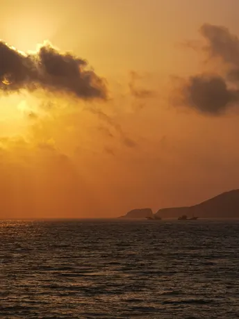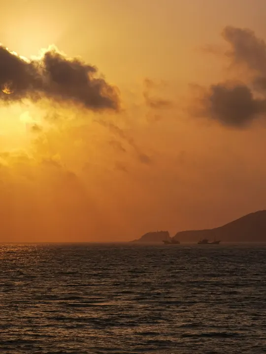 近日日本核废水排放事件,引发很高的关注度。这几天整理旧图片时看到一张前几年普陀山观日出时拍到刚准备出海工作的渔船。
