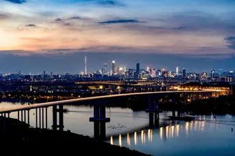 Z字型进城之路与广州城 蓝调时刻搭配上淡淡霞光,正是盛夏之夜的开始
