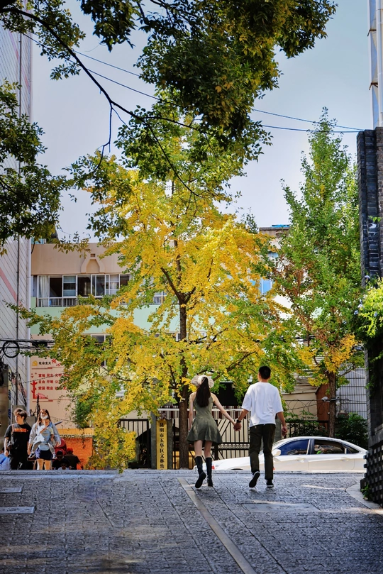 先生坡,云南大学旁小巷,由翠湖西门步出,右拐左转,迎坡而上,巷尾文林街。 围绕翠湖,周边还有黄公东街,登华街,熟悉、又陌生、感觉遥远,以先生称道在民国之后己失传。 先生坡巷子不深,小店林立,装饰个性,风格朴素,以古朴典雅,文化内涵,小资情调,民国风格吸引那份或闲情逸致,或热恋心情情感。 巷尾坡头,都市喧哗,车来人往。巷内小憩,安坐全然忘记所处闹市之中,静得好像入戏民国时代。 找一家雅座,喝上一杯咖啡,浓香飘逸,借着发呆走神,望向过往的街道,行人像T台走秀,儒雅气质尽在飘逸的脚下,俏丽身姿尽在消失的背影中。 近中秋,早熟了几棵银杏,阳光照射,金黄耀眼,历史上的今天?先生坡上的先生,历史不会忘记昨天。